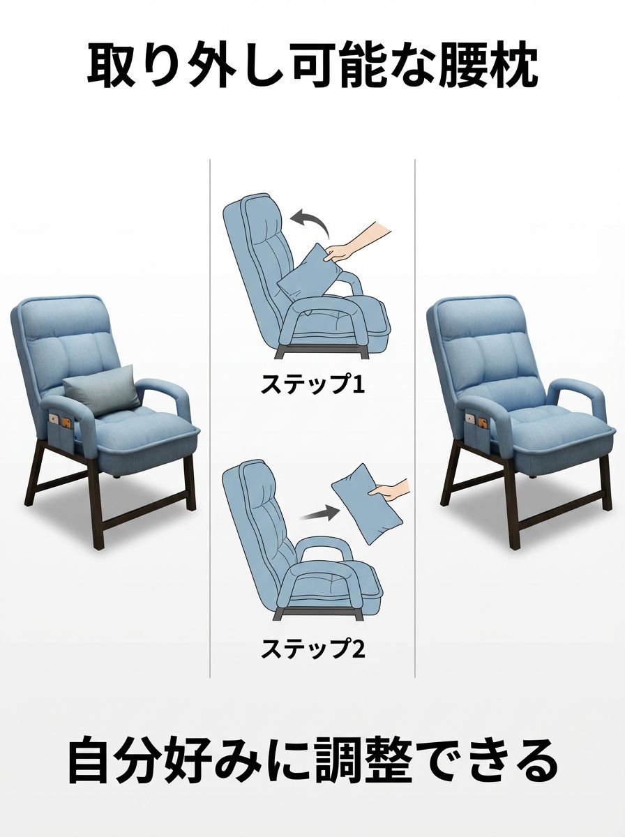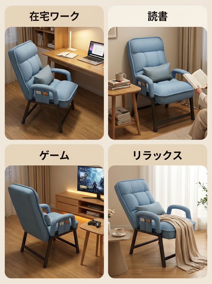 ● 背もたれが倒れにくい設計なので、カジュアルながらも姿勢をしっかりサポートし、集中力を保ちやすくなっています。